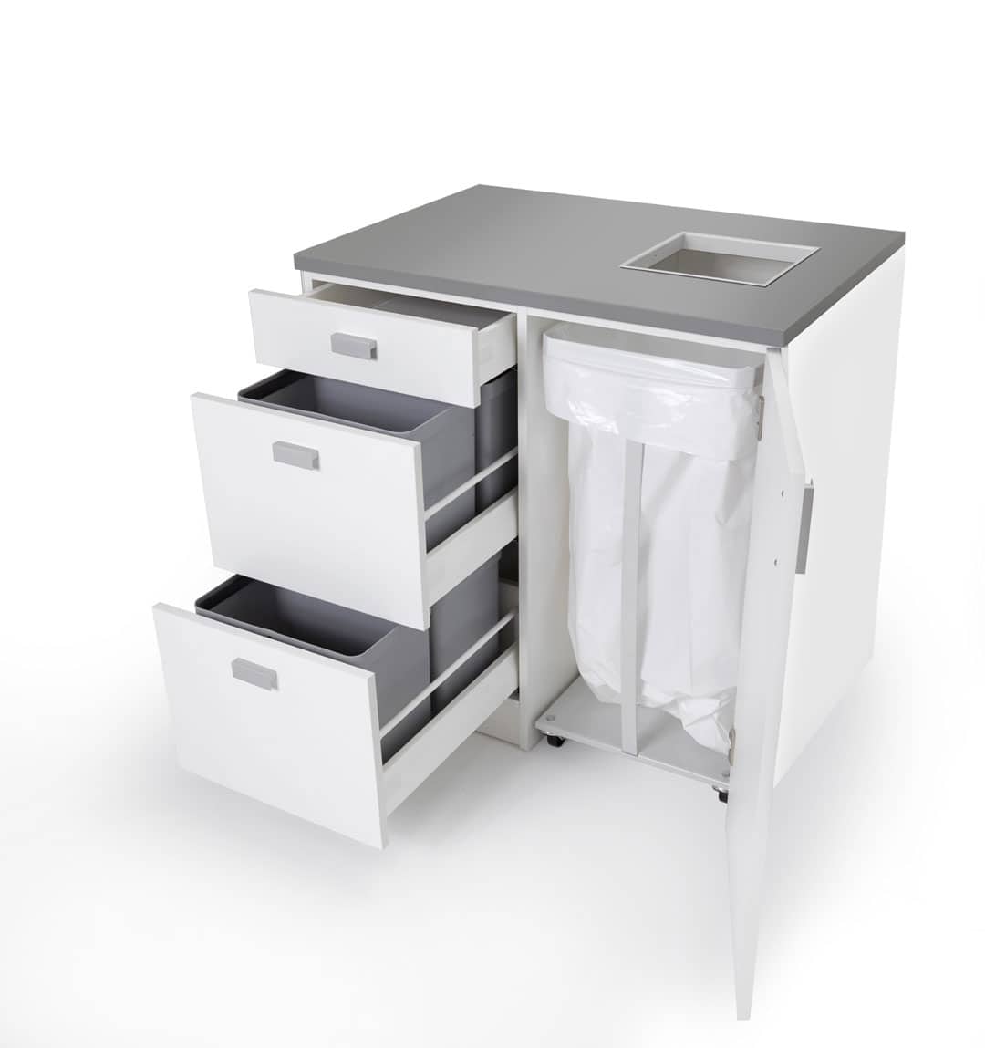 Lådskåp med 3 st utdragslådor med 30 L plastkärl
