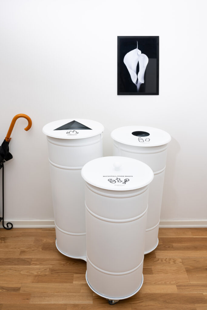 Bestående av Korg, prov på 22 L matavfallspåse, Droppfat och Distans.